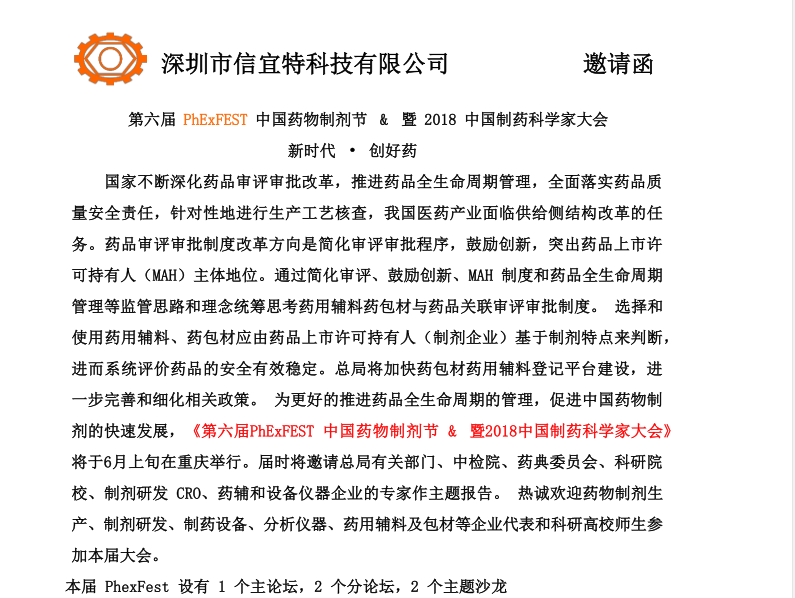 國家不斷深化藥品審評審批改革,推進藥品全生命周期管理,全面落實藥品質 量安全責任,針對性地進行生產工藝核查,我國醫藥產業面臨供給側結構改革的任 務。藥品審評審批制度改革方向是簡化審評審批程序,鼓勵創新,突出藥品上市許 可持有人(MAH) 主體地位。通過簡化審評、鼓勵創新、MAH 制度和藥品全生命周期 管理等監管思路和理念統籌思考藥用輔料藥包材與藥品關聯審評審批制度。選擇和 使用藥用輔料、藥包材應由藥品上市許可持有人(制劑企業)基于制劑特點來判斷, 進而系統評價藥品的安全有效穩定。總局將加快藥包材藥用輔料登記平臺建設,進 -步完善和細化相關政策。為更好的推進藥品全生命周期的管理,促進中國藥物制 劑的快速發展,《第六屆PhExFEST 中國藥物制劑節&暨2018中 國制藥科學家大會》 將于6月上旬在重慶舉行。屆時將邀請總局有關部門、中檢院、藥典委員會、科研院 校、制劑研發CRO、藥輔和設備儀器企業的專家作主題報告。熱誠歡迎藥物制劑生產、制劑研發、制藥設備、分析儀器、藥用輔料及包材等企業代表和科研高校師生參 加本屆大會。
